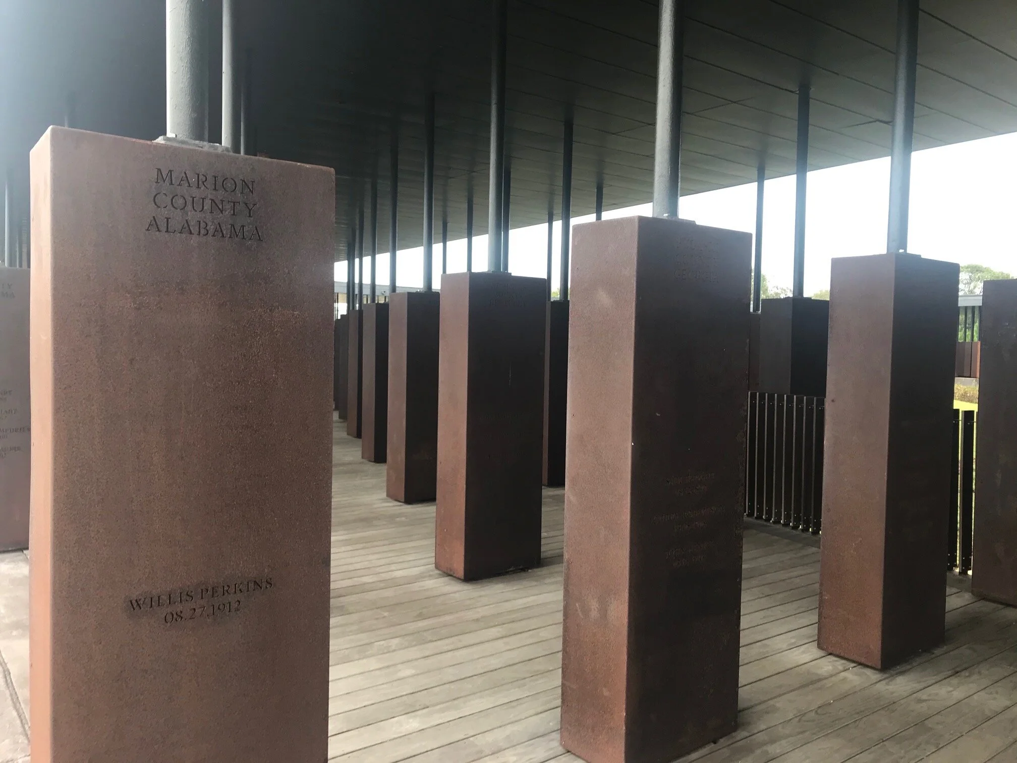 These large plaques list names of lynching victims by county and state. Some only have one name and others have many names.