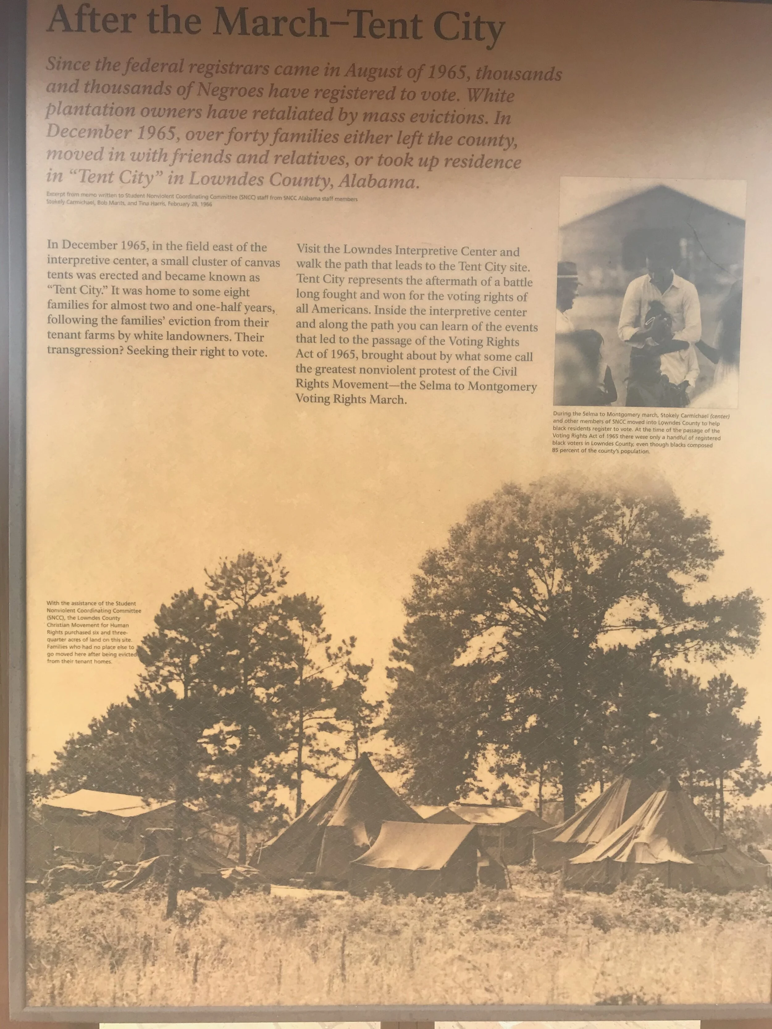 We found the history of Tent City very interesting. It is one of the stops along the march route to Montgomery.
