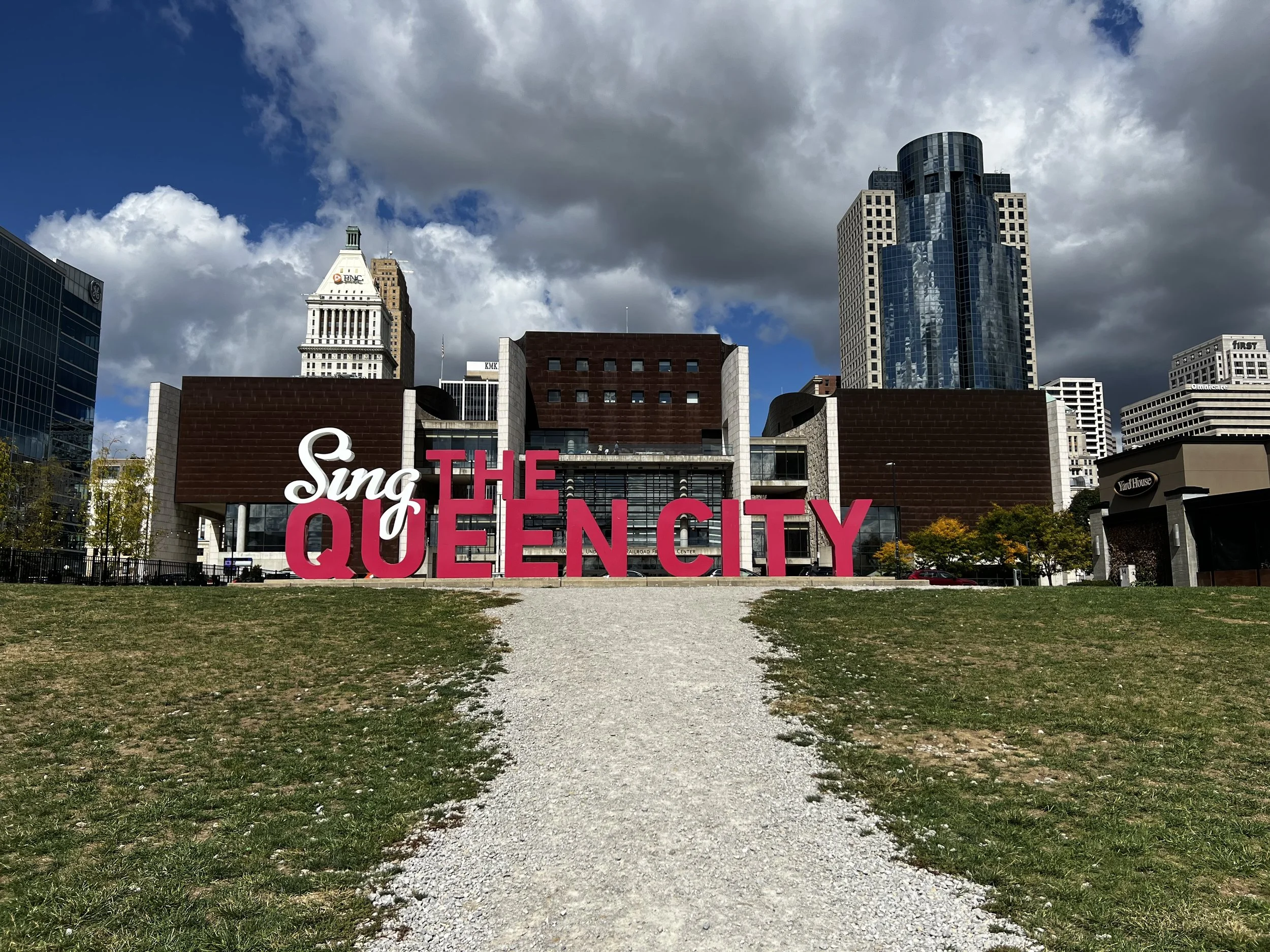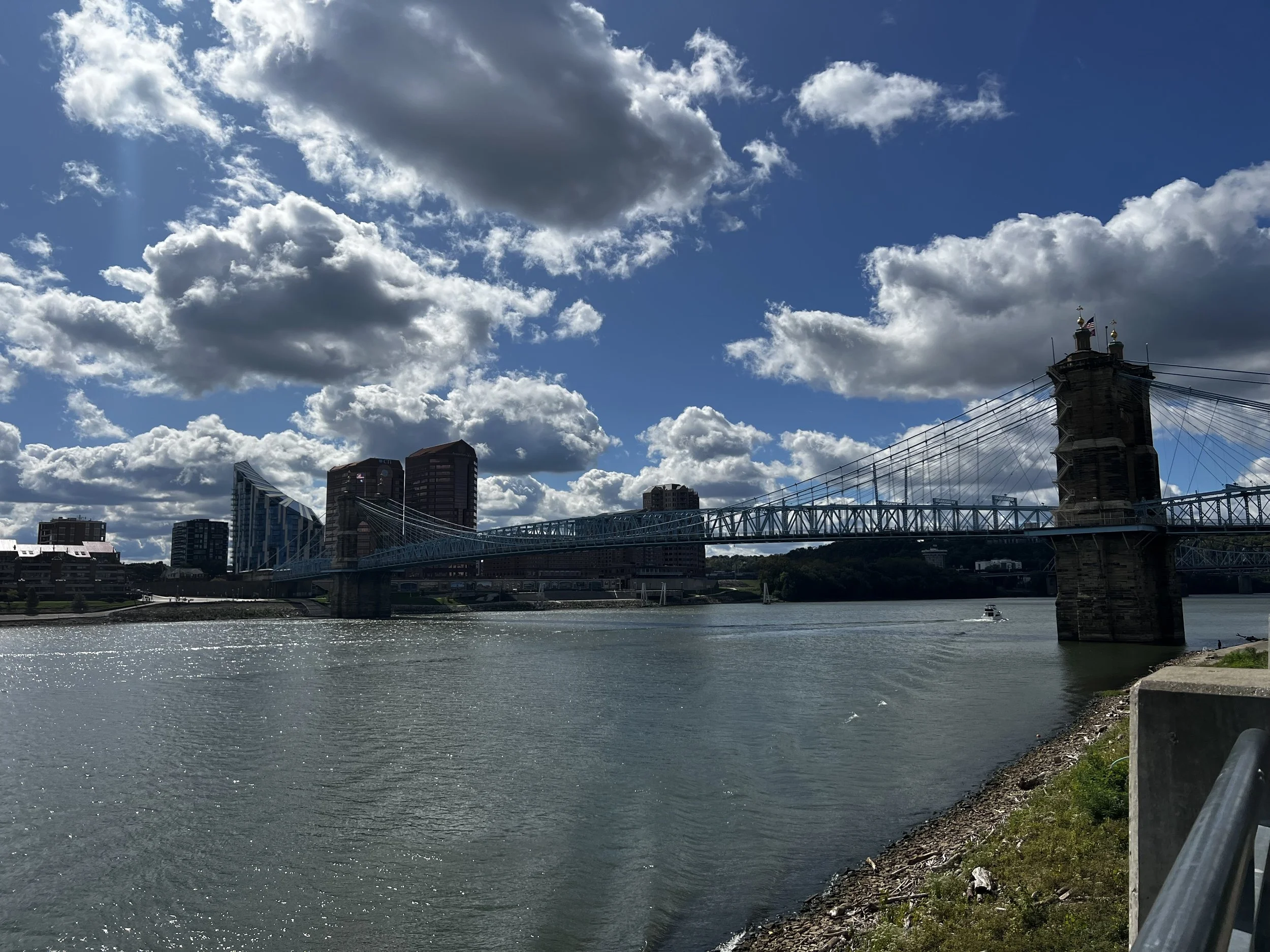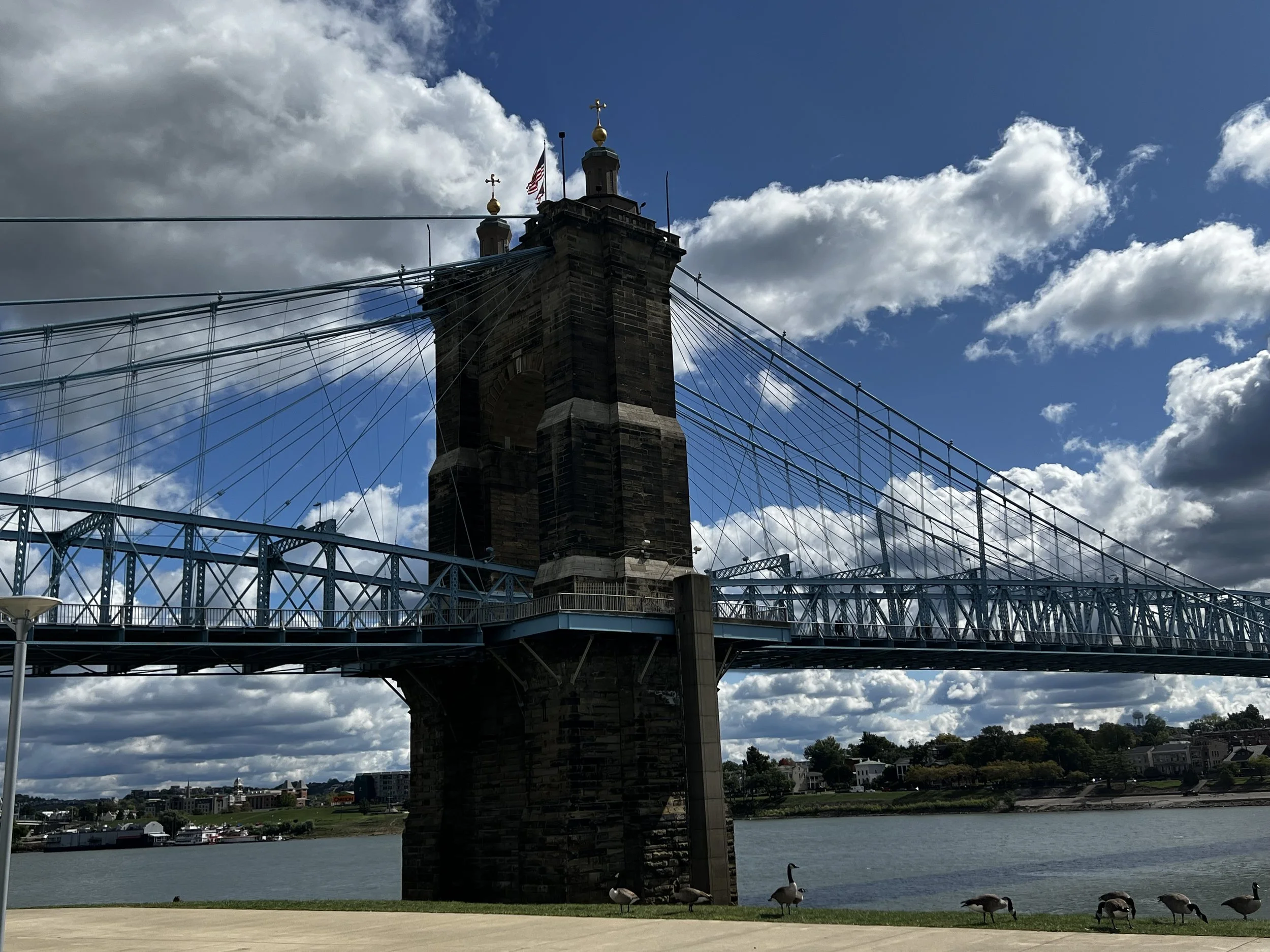After spending time in farm country and small towns, we had to experience city life. In all the times visitIng Kim and Greg, we never spent time in downtown Cincinnati. We went in one Saturday morning and spent the day enjoying the city. First stop was to Smale Park along the Ohio River for a stroll along the water and then lunch at a brewery overlooking the river. The Roebling Suspension Bridge crosses the Ohio River there. What a beautiful bridge but I think we were too close to it to get a good picture.